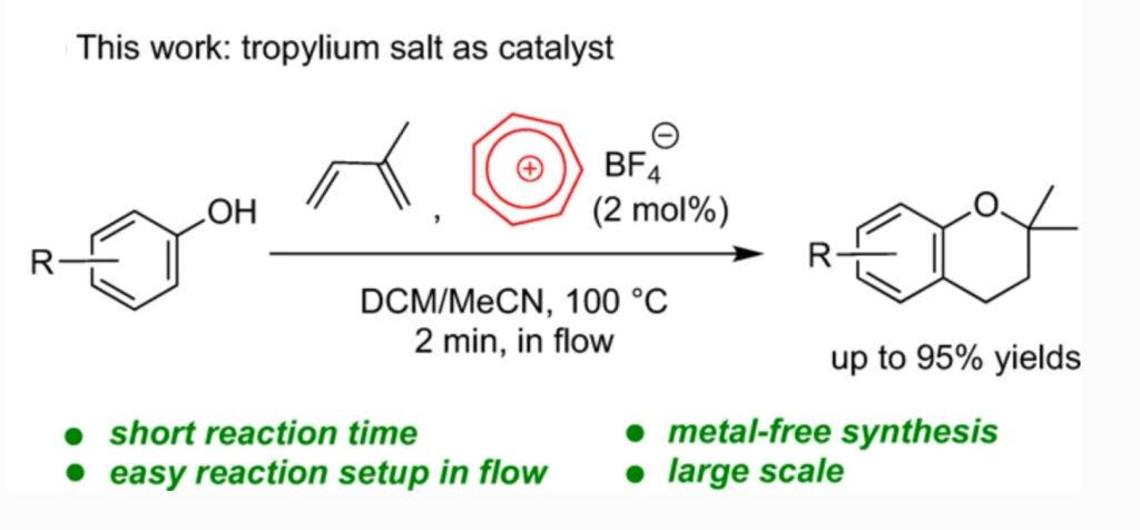 45. Klaus Omoregbee, Kevin N. H. Luc, An H. Dinh, Thanh V. Nguyen,* J. Flow. Chem. 2020, 10, 161-166: “Tropylium-promoted prenylation reactions of phenols in continuous flow“.