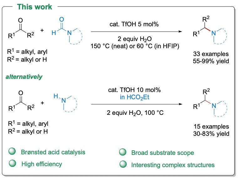 47. Mohanad A. Hussein, An H. Dinh, Vien T. Huynh, Thanh V. Nguyen,* Chem. Commun. 2020, 56, 8691-8694: “Synthesis of Tertiary Amines by Direct Brønsted Acid Catalyzed Reductive Amination“.