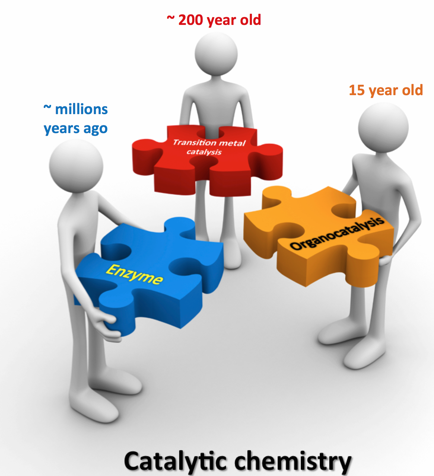 (Organocatalysis is the third major branch of catalytic chemistry, apart from organometallic catalysis and enzymes)